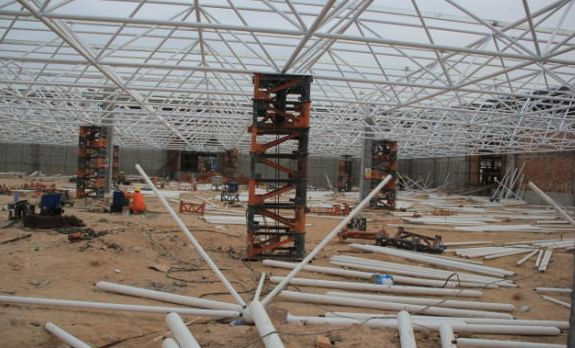 5)总体晋职法:此步履多使用在周边支护以及有多点支护的网架结构,可采取平板升降机、液压千斤顶等小型机具作业潮州施工;